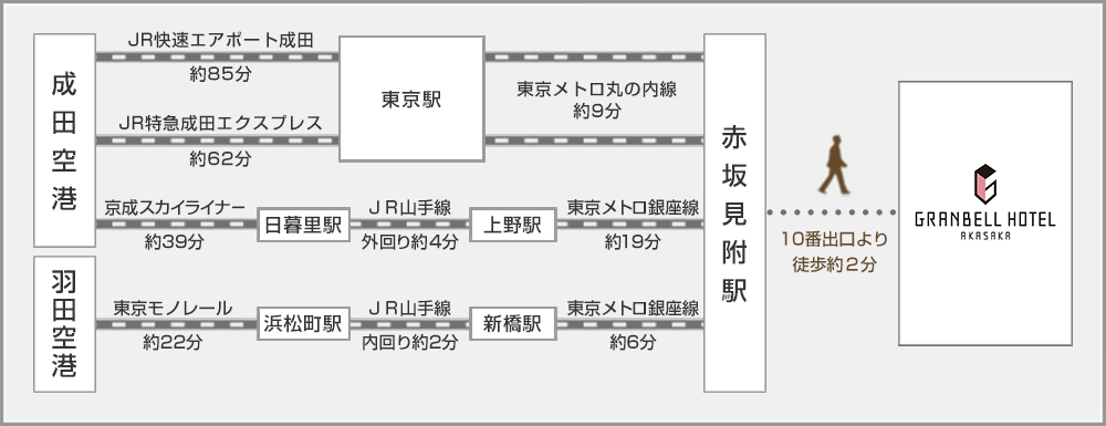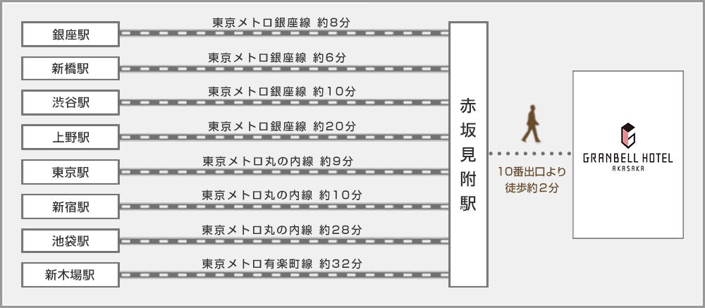 從東京Metro銀座線、丸之內線的赤坂見附站10號出口 (Bic Camera側) 步行約2分鐘的好地段。