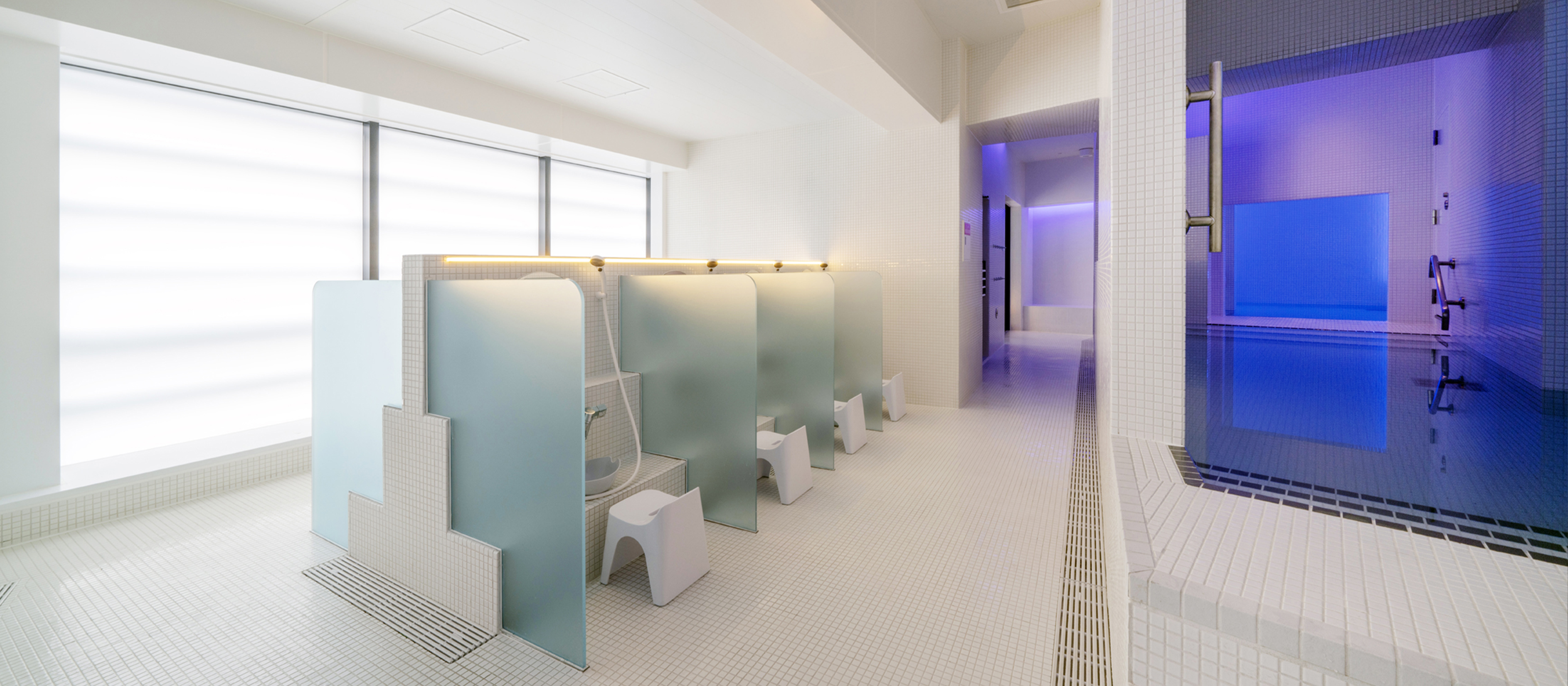 理念是「營造一個引人深思的空間」。獨特的單色浴缸和燈光設計將引領您放鬆身心。請在此舒緩身心,盡情放鬆。