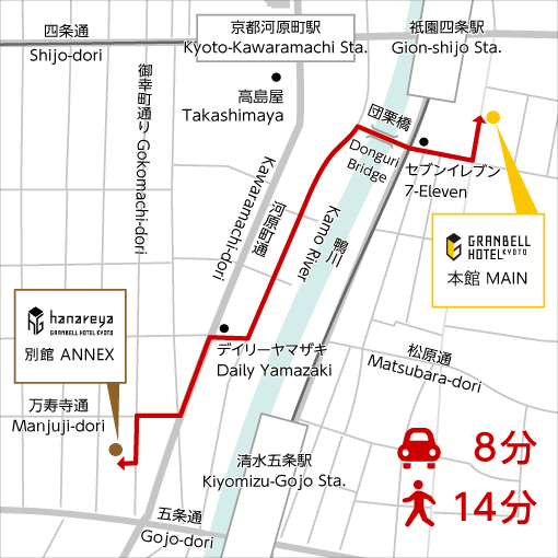 我們的酒店“ GRANBELL HOTEL KYOTO hanareya ”和主酒店“ GRANBELL HOTEL KYOTO”