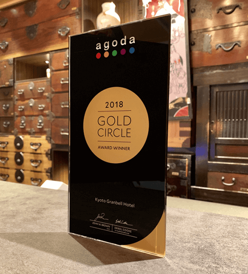 GRANBELL HOTEL KYOTO榮獲亞洲領先的酒店預訂網站 Agoda.com 頒發的 2018 年度金圈獎,該網站可處理全球各地的酒店。
