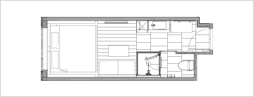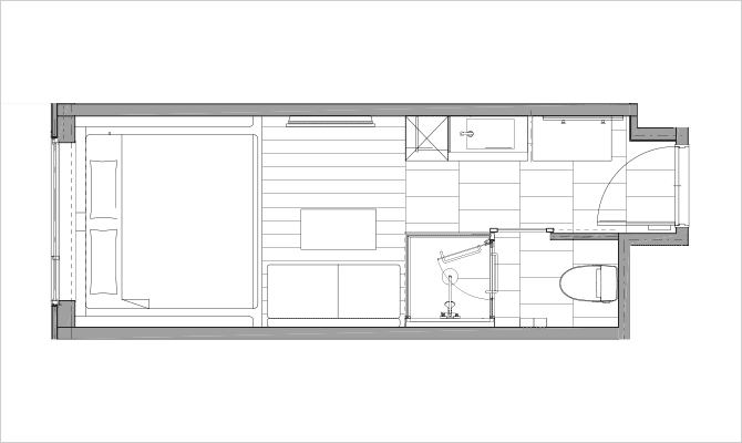 在窗邊設置了寬195cm的大尺寸的床,前面設置了寬敞的沙發和桌子。
