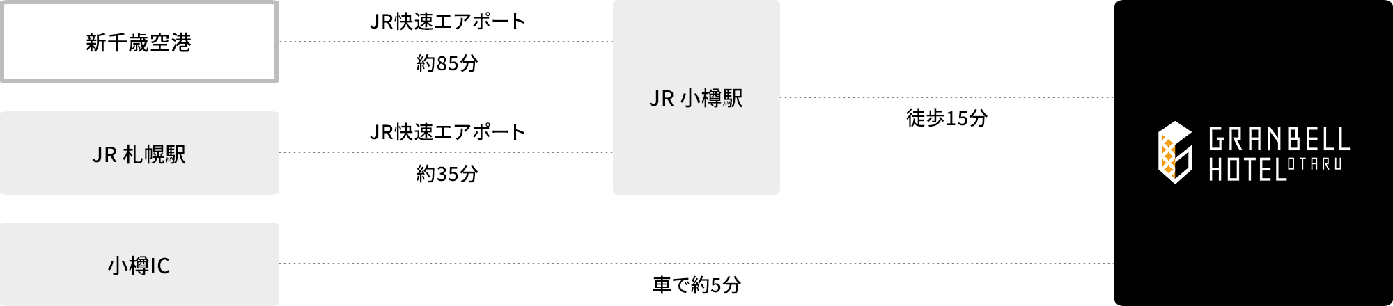 ・從JR札幌站乘坐JR快速機場到小樽站約35分鐘
