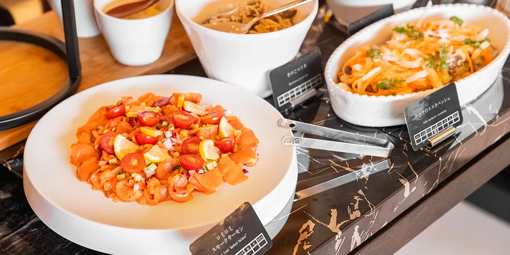 使用自然資源豐富的北海道下川町的“下川60酵素雞蛋”制作的生雞蛋拌飯。醇厚濃郁的味道為自助早餐增添了滿足感。與北海道產品牌米“七星”剛煮好的米飯也是絕配。